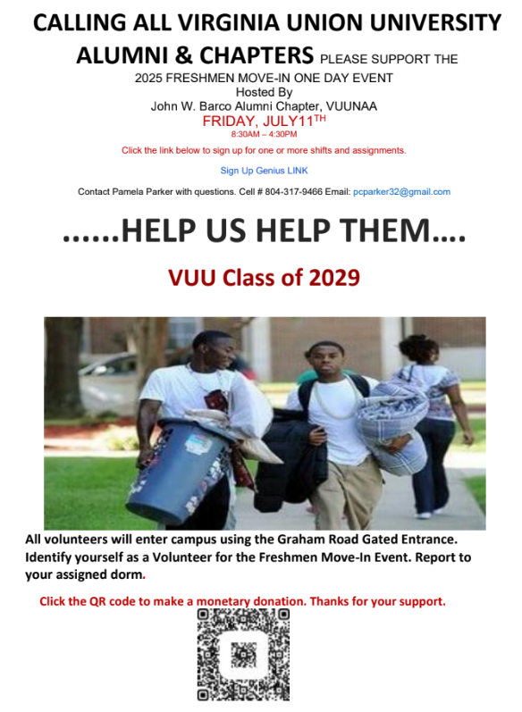 The John W. Barco Alumni Chapter of the Virginia Union University National Alumni Association is a 501(c)(3) organization.  The Chapter was first chartered during fiscal year 1942 - 1943 and currently consists of alumni who reside in the Richmond and the surrounding areas, as well as friends of the University who wish to assist the Chapter in fulfilling its goals and purposes.